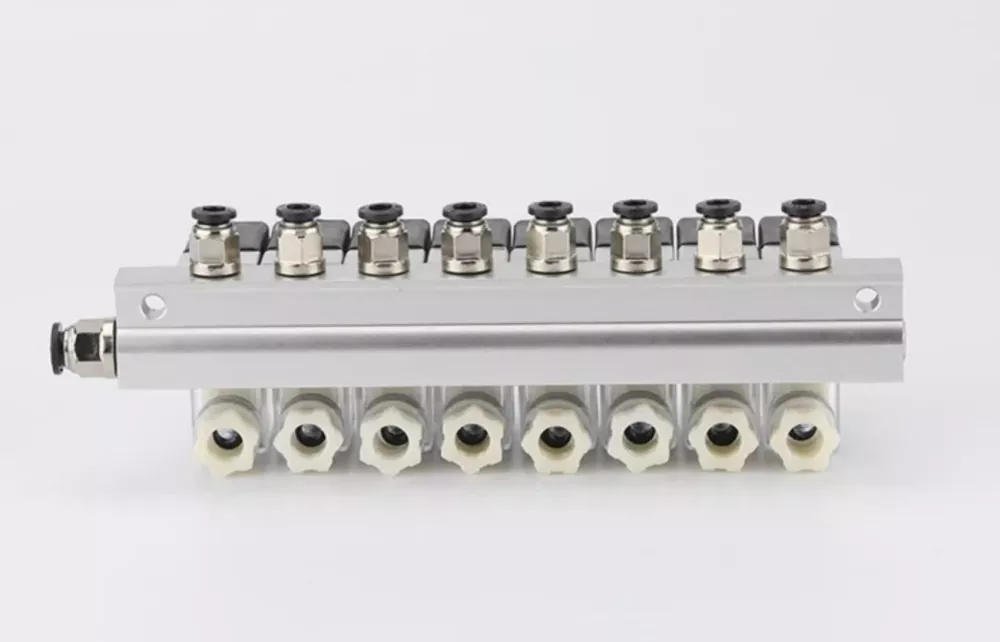 Usque ad 10 pcs 2V025 valvae solenoides multiplicem valvam formare possunt.