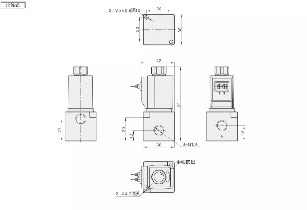 Valvae solenoidei altae fluxus 3V3 est positio 2-, valvae 3-via cum consilio directo-agens, responsionem citius praebens et frequentiam mutandi altiorem quam valvulae gubernatoris operatae. Aluminium robustum corpus mixturae altum fluxum aeris et pressionem altiorem sustinet, et etiam applicationibus vacuis adhiberi potest. Optiones solenoides coil includunt DC12V, DC24V, AC110V vel AC220V, operationem stabilem et sensibilem procurans.