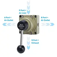 Ouleikai (Olk) HV200A / B Duo-modo quattuor-Port manu-operated valvulae sunt manually operated, cum aer semita switching effectum per rotating valvae tractamus. Faciles operari et intuitive, requiring additional industria copia. HV200b 2/4 portum valvae features a constructum-in silencer in fundo exhauriunt portum.