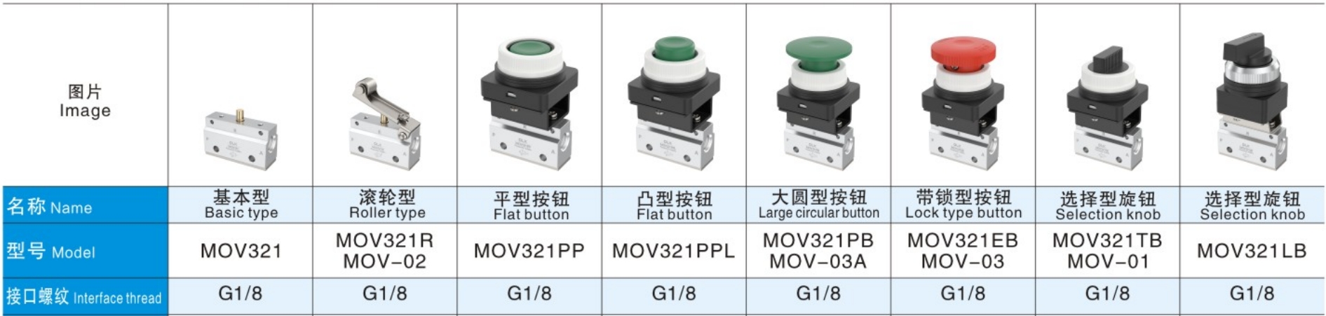 In Mov321 series valvae potest control unum-agens cylindrace cum interface diamets M5 et G1 / VIII. P stat pro inaet, ad exitus et exhaurit portum sita est ad ventilabis virga.