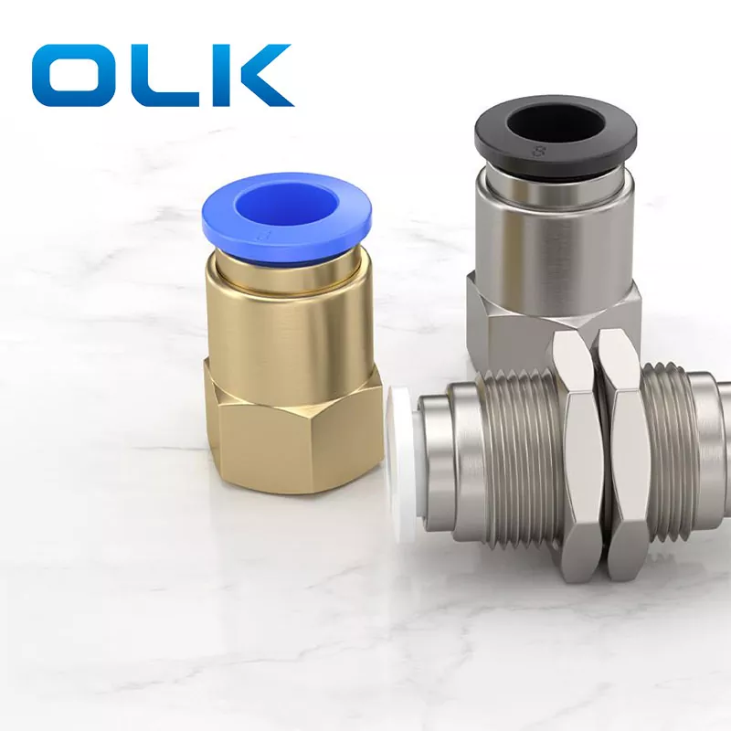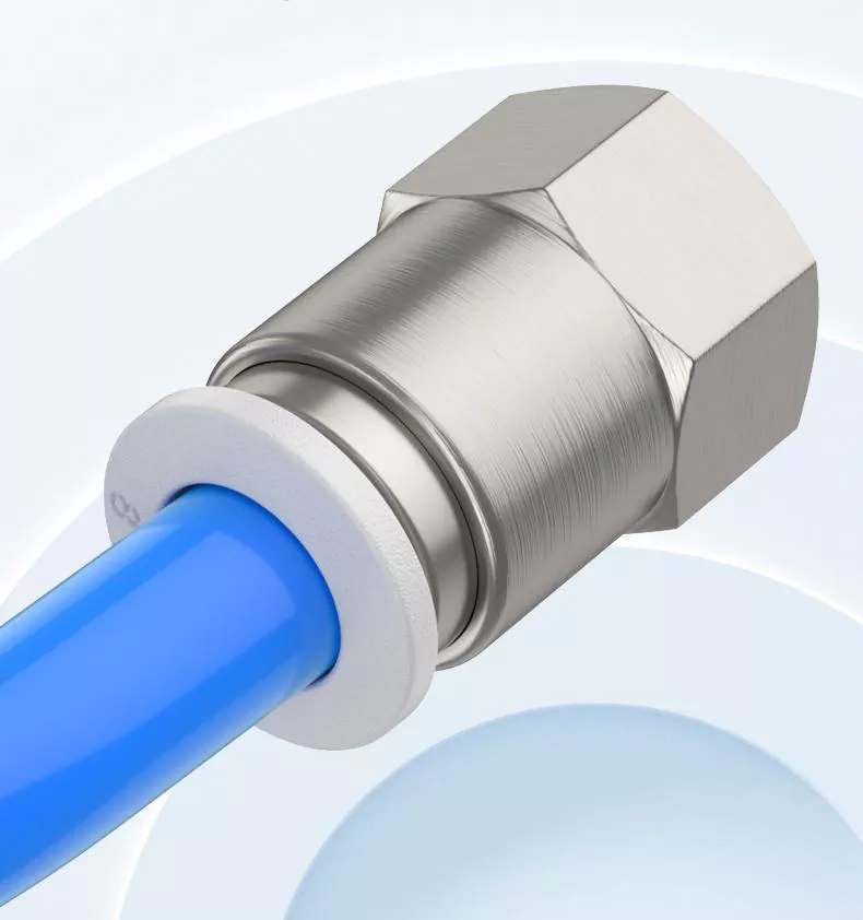 PCF Female Straight Push In Tube Fitting and PC male thread straight push in tube fitting all belong to the basic type push-in-fitting.But the PCF is female R thread straight.Internal thread is used to connect external threaded components, and the insertion tube end is connected to a hose.Both support multiple thread standards, making hose insertion and removal convenient.The product features internal threads, and the PCF Female Straight Push In Tube Fitting shape can be breviori et installed magis compactedly