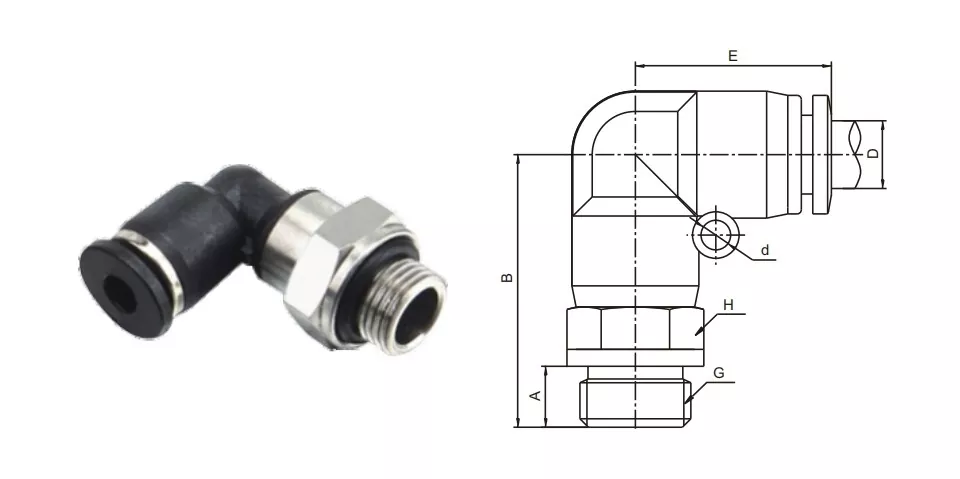 In PL-G masce cubito ventilabis in tube decet est a XC-gradu cubitus iungo et g sequela ad usum in angustiis aut ubi tubing redirection est required.equapped cum signantes annulos ne aeris aut fluidum lacus.