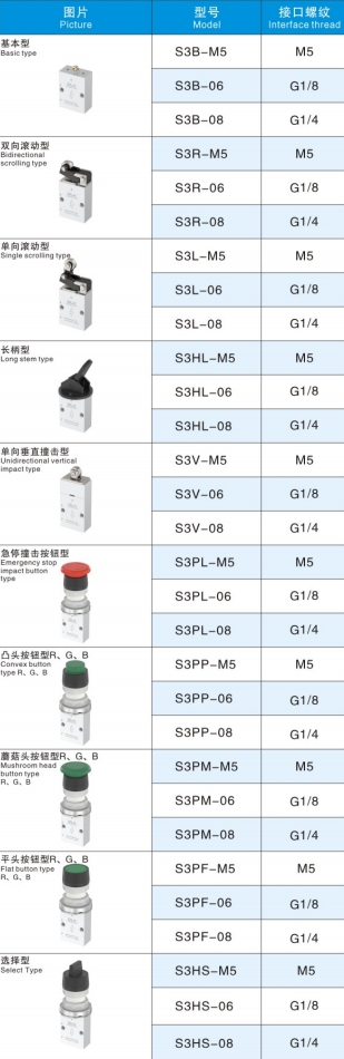 II. S3pf, S3pm, S3pp, S3PL, S3Y, S3HS, S3C, S3D series sunt manually operated, featuring variis structural figuras potestate capitibus ad convenient variis in diversis conditionibus.