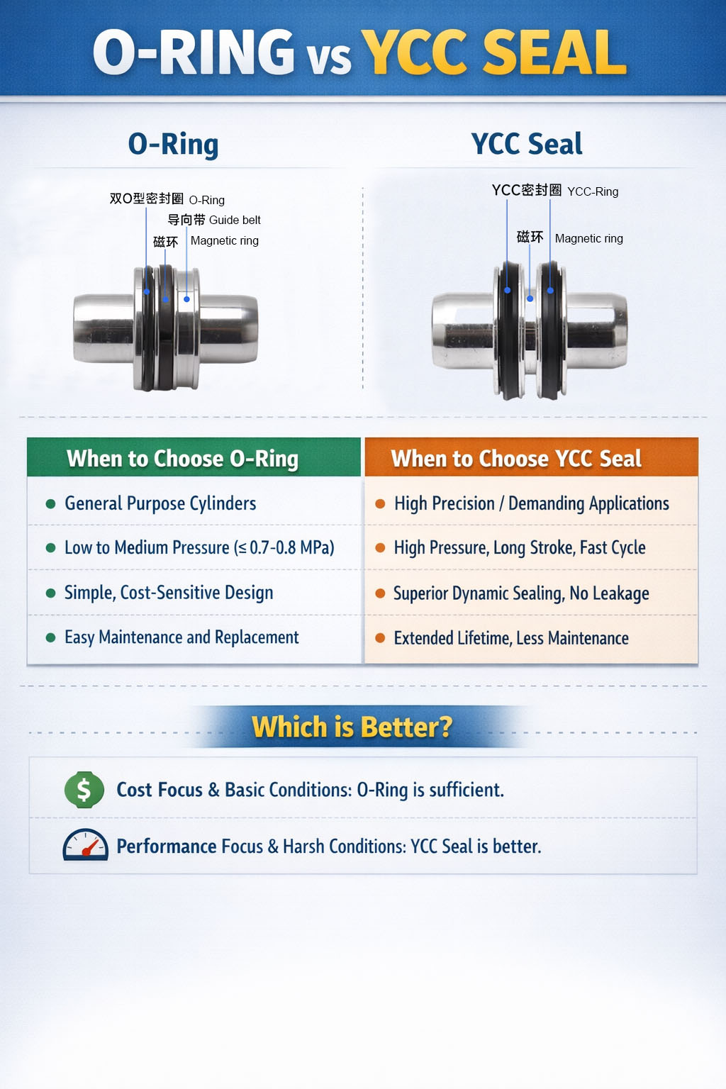 Cum tradito O-annulis, sigillum YCC aptius praebet dynamicam obsignationem et resistentiam induens, sino cylindrum ad conservationem certae operationis sub pressione mutationes et cyclos iteratos. Hoc signanter lacus primos reducit et intervalla sustentationem extendit.